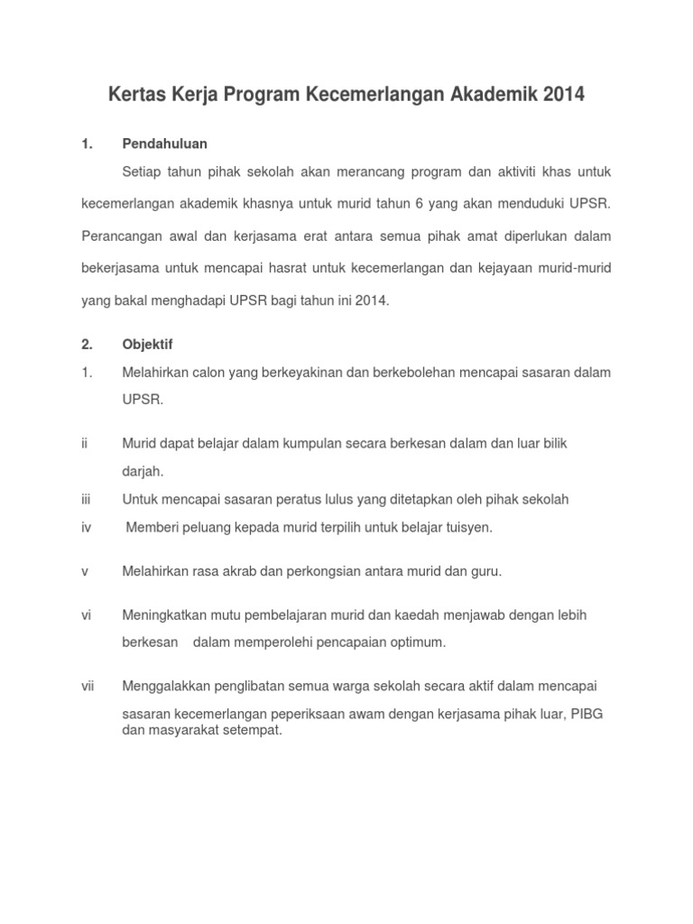Contoh Kertas Kerja Program Kecemerlangan Akademik Angelicasxt