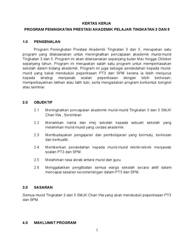 Ini adalah kerana kelemahan di dalam subjek ini akan menjejaskan. Kertas kerja program akademik 1. Berikut merupakan kertas kerja 1 masih dalam peringkat penilaian dan kelulusan Klik disini untuk mendapatkan kesemua kertas kerja program yang dirancangkan Kertas Kerja.